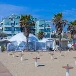호텔은 리미니 도심에서 1km 거리에 있으며 페데리코 펠리니 공항에서 0.8km 떨어져 있습니다. 해변가가 750미터 이내에 위치하고 있습니다. 숙소에서 가장 가까운 버스 정류장은 250m 떨어져 있는 Oliveti입니다.